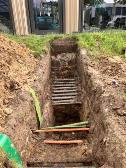 In opdracht van gemeente Amsterdam zijn Van den Heuvel en Dura Vermeer in de wijk Middenmeer (Amsterdam) bezig met de reconstructie van de ondergrondse infra. Onderdeel hiervan is het vervangen van de bestaande kabels en leidingen, riolering en de aanleg van een duurzaam warmtenet. InfraMeesters Oost en InfraMeesters West heeft ondersteund bij de voorbereidende proefsleuven en de toetsing van het 3D ontwerp. Wij ondersteunen met trots bij duurzame initiatieven.