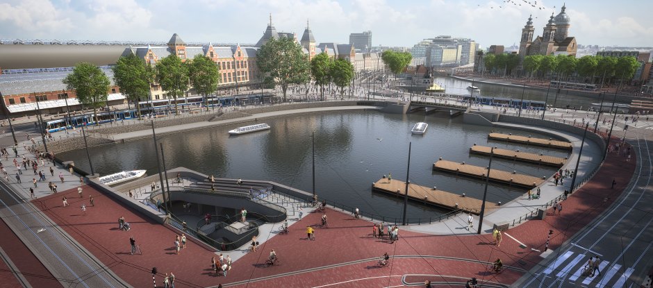 Het kan u niet ontgaan zijn. Het megaproject waarbij de centrumzijde van Amsterdam Centraal volledig wordt vernieuwd. Gedurende 5 jaar bouwen aan water, kades, tramsporen, haltes en aanlegsteigers om het geheel aantrekkelijker en overzichtelijker te maken. Met name voor de 300.000 passanten op deze indrukwekkende locatie. Onder de grote waterpartij voor het station komt een fietsenstalling voor 7000 fietsen. Een onvoorstelbaar dynamisch en complex project.