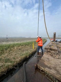 In opdracht van de aannemerscombinatie Beens/Hakkers doet InfraMeesters Oost en InfraMeesters West onderzoek naar de ligging van kabels en leidingen. De opdrachtgever van Beens/Hakkers de Provincie Noord Holland gaat langs Westfriesche Vaart tussen Kolhorn en Medemblik op verschillende plekken de beschoeiing vervangen. Op dit traject zijn diverse kabels en leidingen aanwezig welke ook de vaart kruizen. De kabels en leidingen wil de aannemer zo goed mogelijk in beeld hebben om dit in het ontwerp te kunnen integreren.